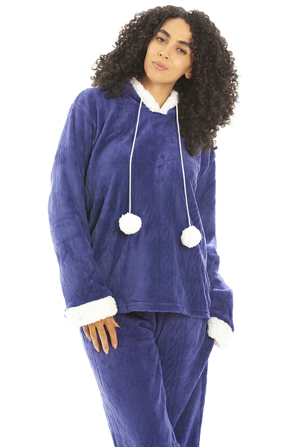 Camille Womens Navy Supersoft Fleece Hooded Pyjama Set