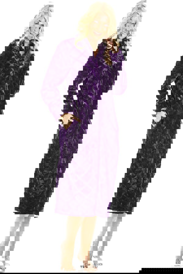 • Design: This housecoat features a classic diamond emboss, turn down collar & a thin satin band on the collar and cuffs to keep you feeling classy whilst being warm. Available in Grey, Brown, Purple & Burgundy.