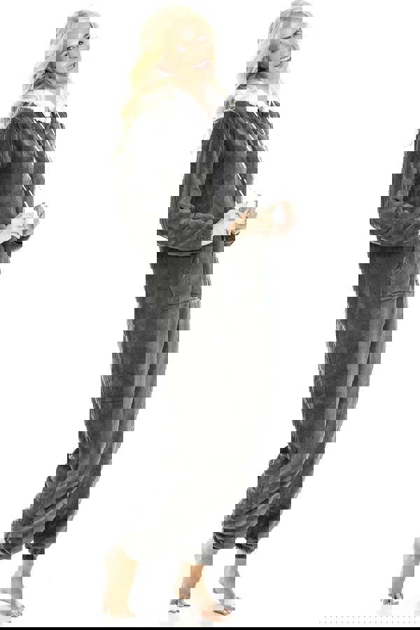 Camille Womens Supersoft Fleece Charcoal Hooded All In One