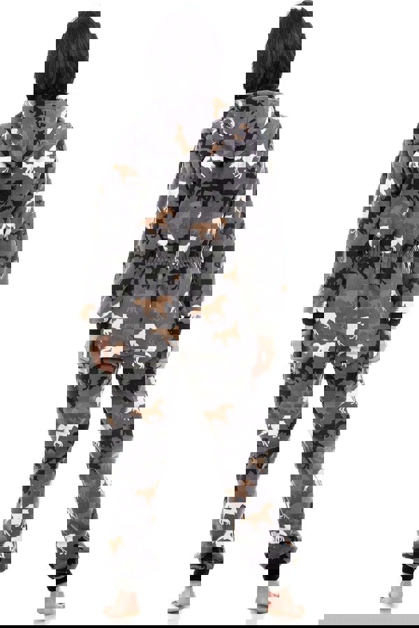 Camille Womens Supersoft Fleece Grey Horse Print All In One