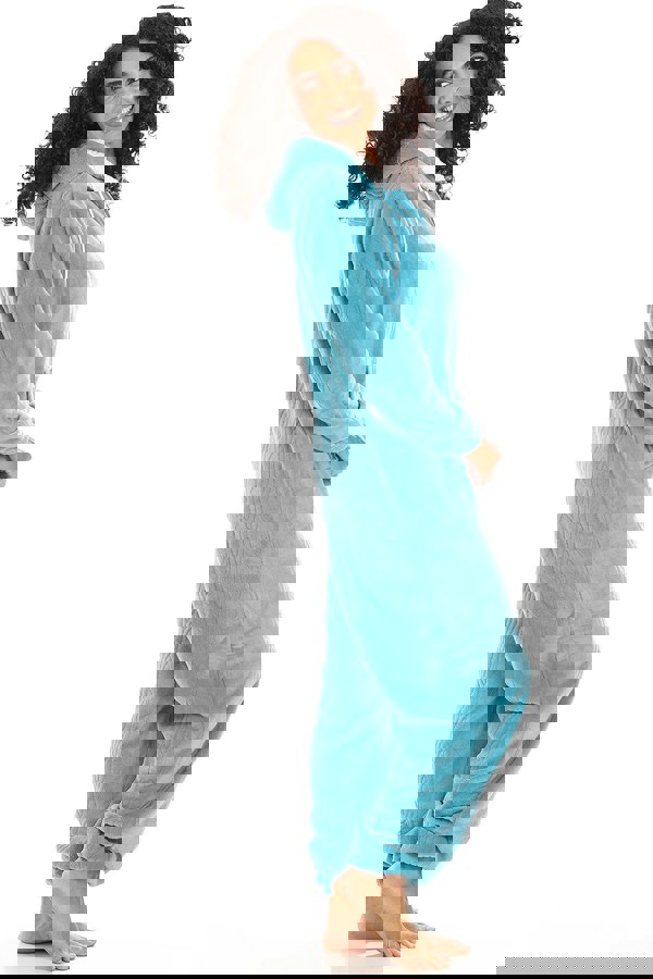 Camille Womens Supersoft Fleece Light Blue Hooded All In One