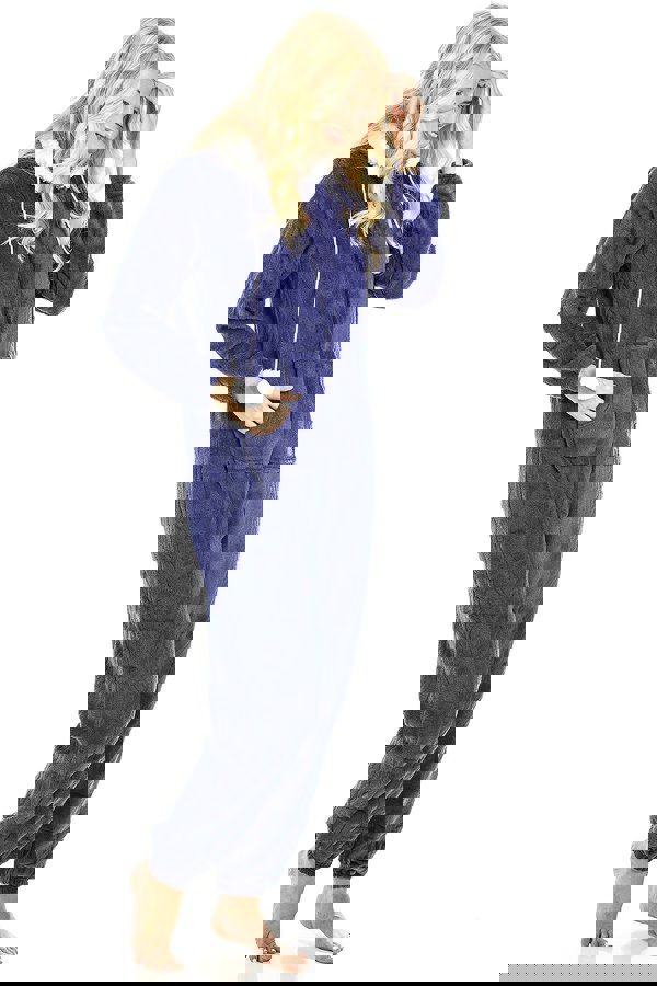 Camille Womens Supersoft Fleece Navy Hooded All In One