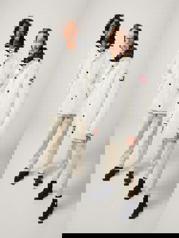 Canada Goose Logan Parka Jacket for kids arrives in white for AW2025. This down padded style suits both boys and girls and brings a clean, minimal look to cold-weather dressing. The exterior is water-resistant, helping to keep them dry and comfortable in changeable conditions.