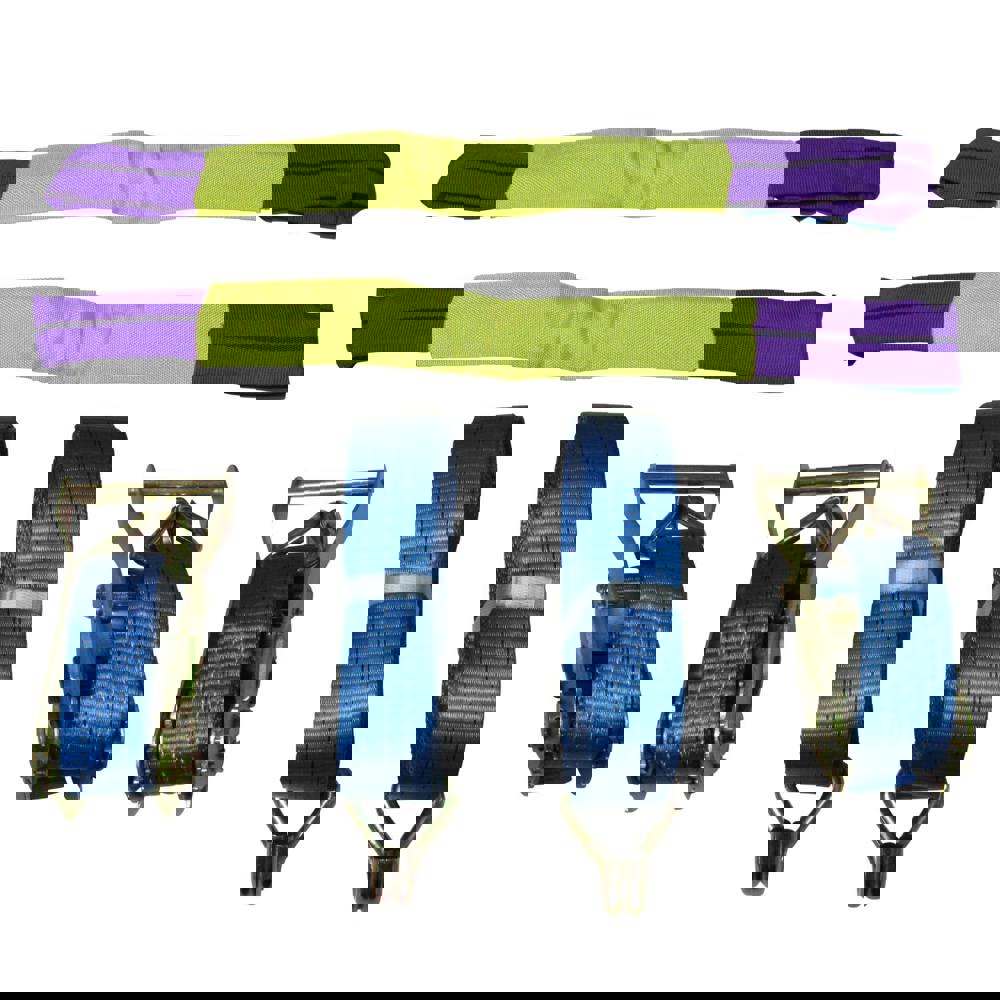 Kit Includes - Ratchet Handles, Webbing Straps with Claw Hooks and Round Slings.
