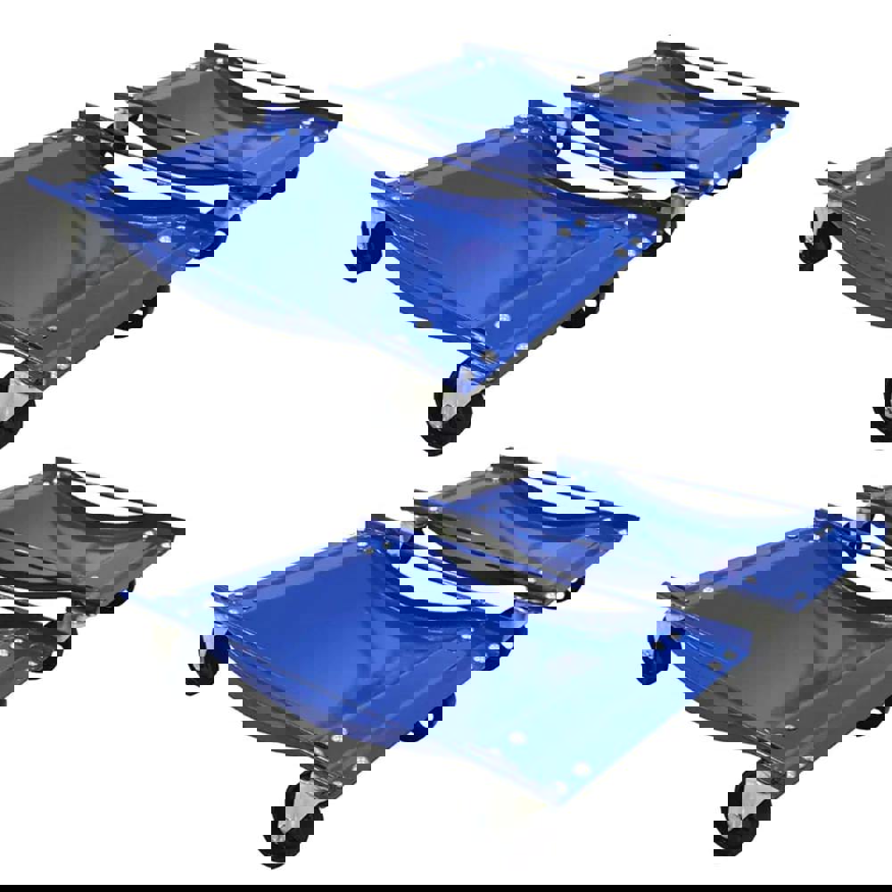 Each dolly is rated to a capacity of 1000lb (453kg) per skate, and when used as a set of 4 they can support up to 4000lb (1814kg). For confident handling, the iron caster wheels rotate through 360 degrees to help guide the vehicle precisely. This model also features side bars on each dolly to help keep the wheel fully located on the trolley during manoeuvring.