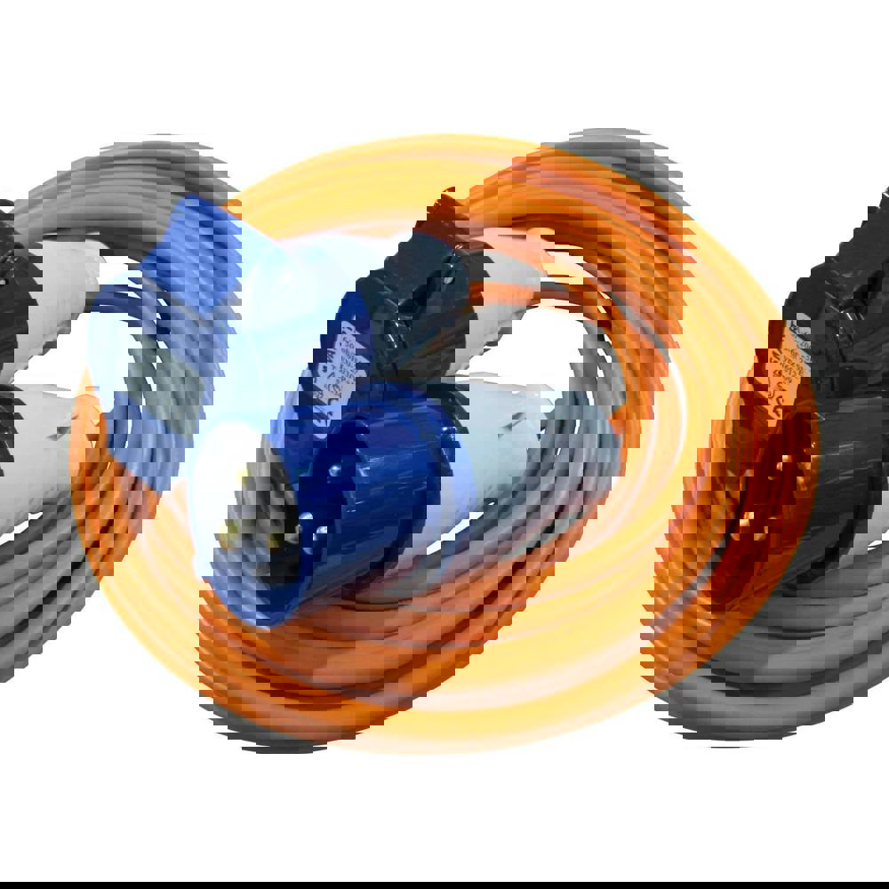With a 2.5mm cable and a 25m length, it’s suited to outdoor set-ups where you need a longer reach from the mains point to your unit. The lead is IP44 rated (splash proof) and BS EN60309 approved, and comes complete with a 16A plug for connecting to your caravan at one end and the campsite mains at the other. Suitable for a range of settings including camping, caravans, garage use, marine use and generators.
