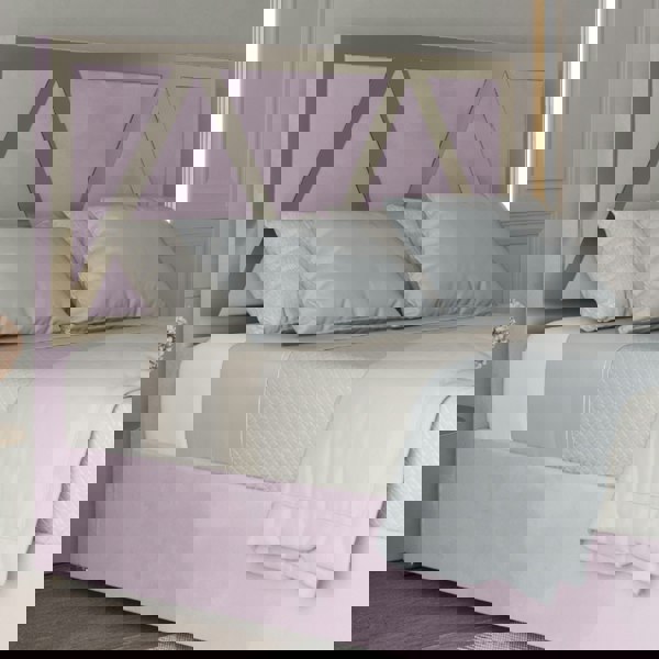 The headboard is panelled and boasts a generous lofty and comfy surface