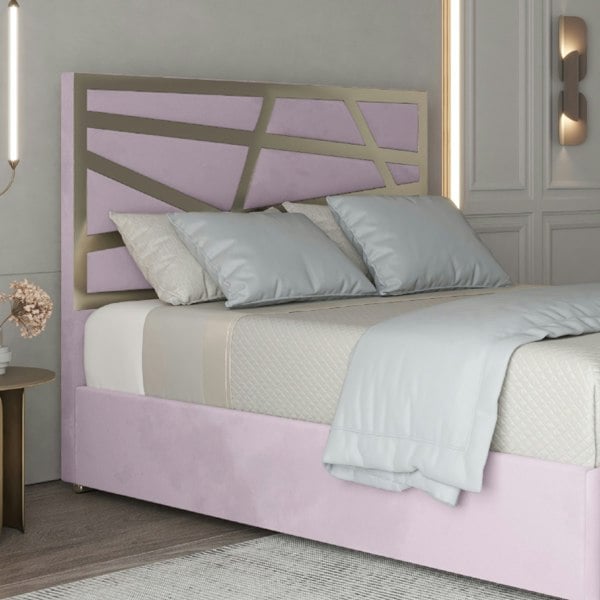 Casa Magna Arabella Upholstered Soft Velvet Metal Bed Frame - Pink