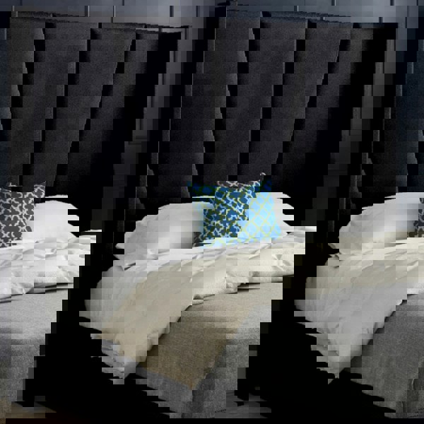 Casa Magna Bellini Wide Curved Winged Upholstered Soft Velvet Bed Frame - Black