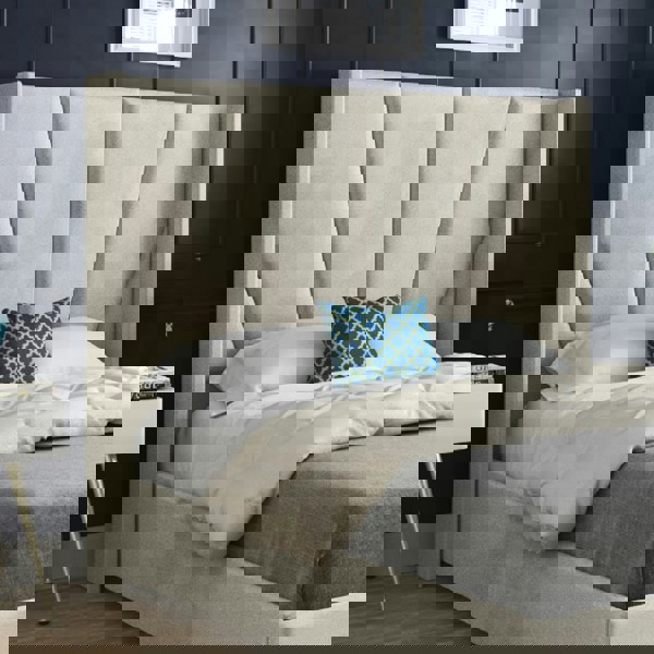 Angled lines create illusion of grand space and the headboard is generously padded for comfort