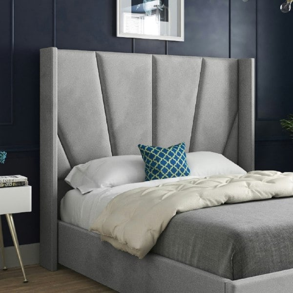 Casa Magna Bellini Wide Curved Winged Upholstered Soft Velvet Bed Frame - Grey