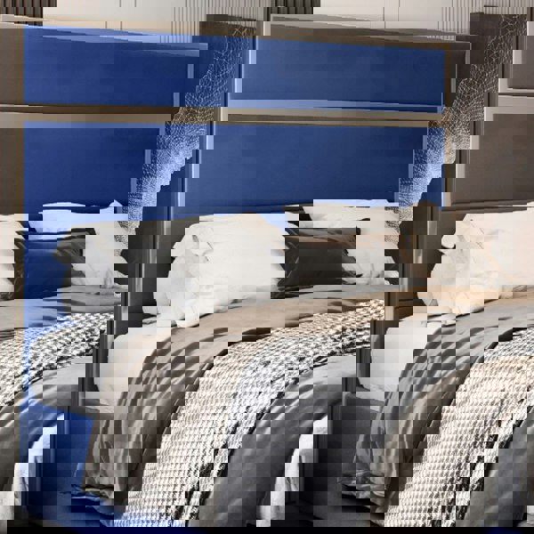Casa Magna Bentley Upholstered Soft Velvet Metal Bed Frame - Blue