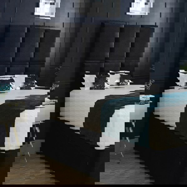 Cube design floorstanding headboard with a classic divan base