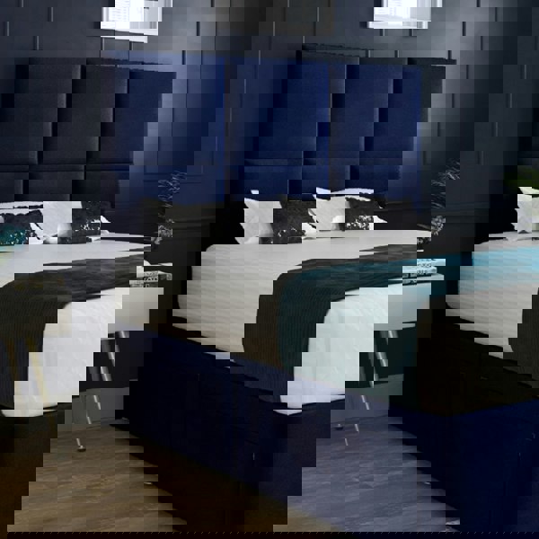 Casa Magna Caprio Upholserted Floorstanding Headboard With Divan Bed Frame - Blue