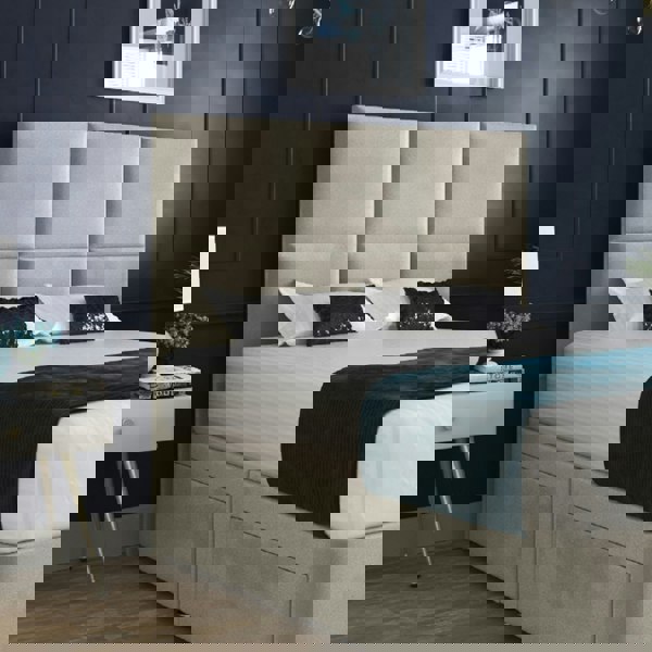 Casa Magna Caprio Upholserted Floorstanding Headboard With Divan Bed Frame - Cream