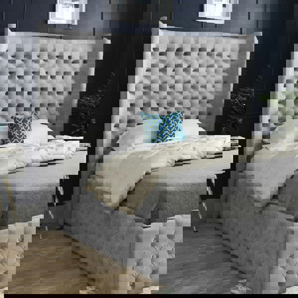 Casa Magna Florence Wide Winged Upholstered Soft Velvet Bed Frame - Grey