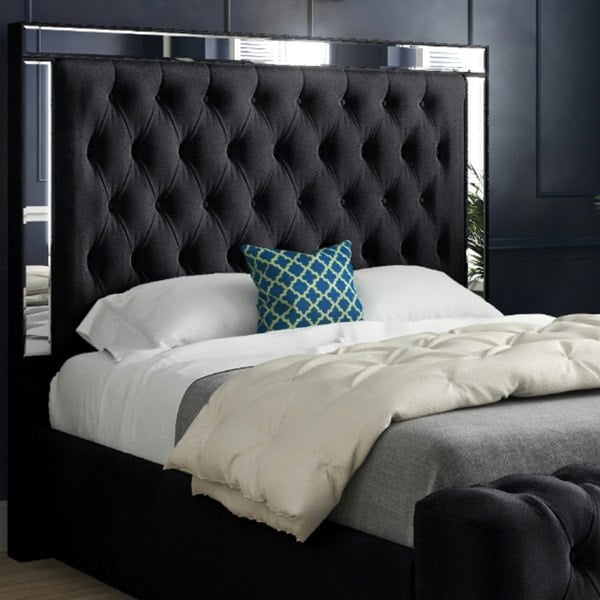 Casa Magna Marino Mirror Upholstered Soft Velvet Bed Frame - Black