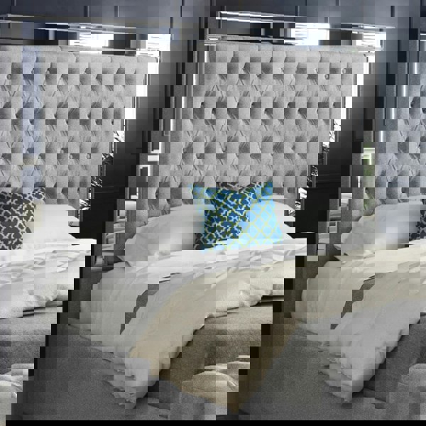 Casa Magna Marino Mirror Upholstered Soft Velvet Bed Frame - Grey