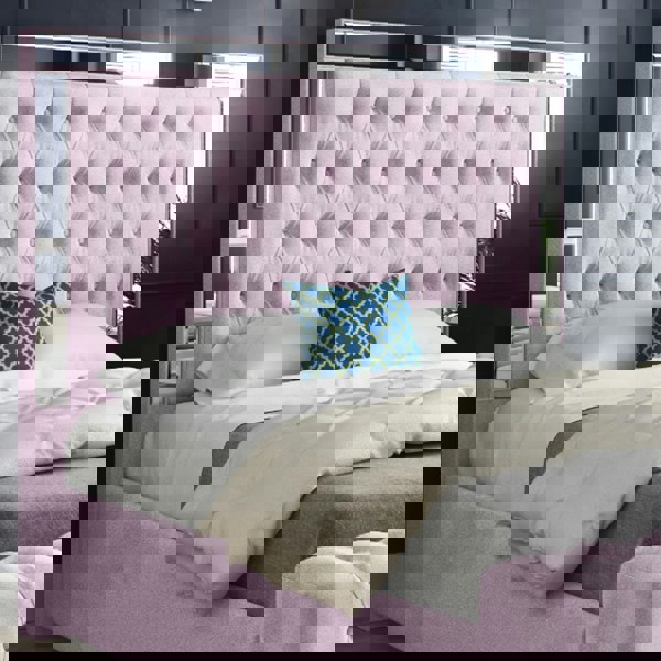 Casa Magna Marino Mirror Upholstered Soft Velvet Bed Frame - Pink