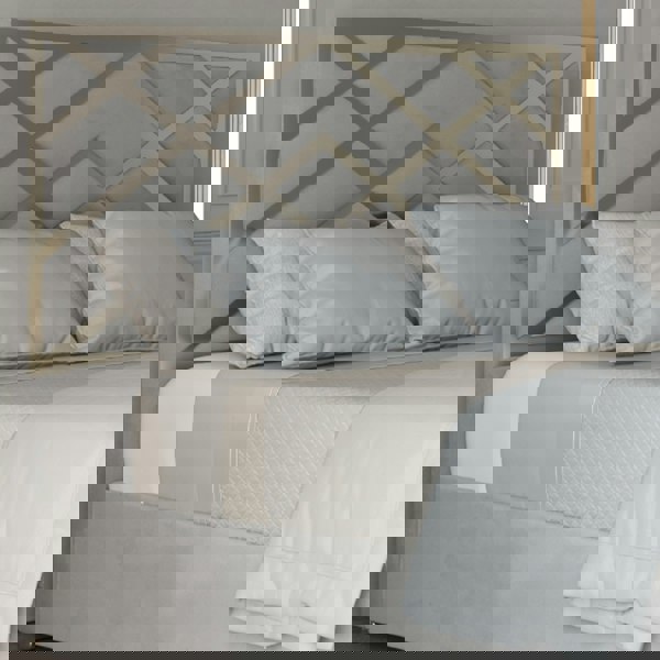 The footboard is detailed with pipe feet to match brushed silver or gold legs to match brushed gold