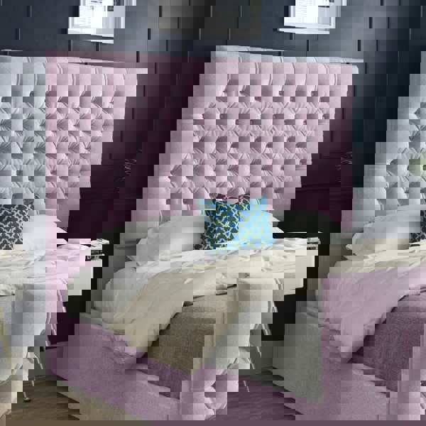 Casa Magna Novara Upholstered Soft Velvet Bed Frame - Pink