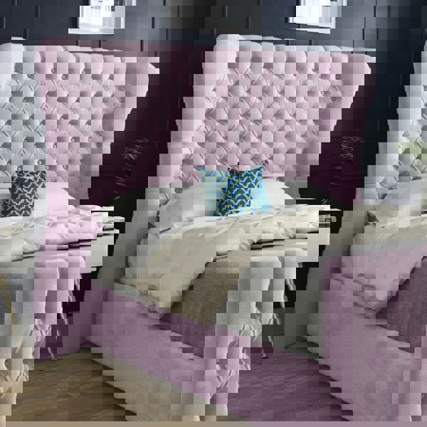 The wings on the headboard of this bed create a sense of immersion, whilst the buttoning adds character and style