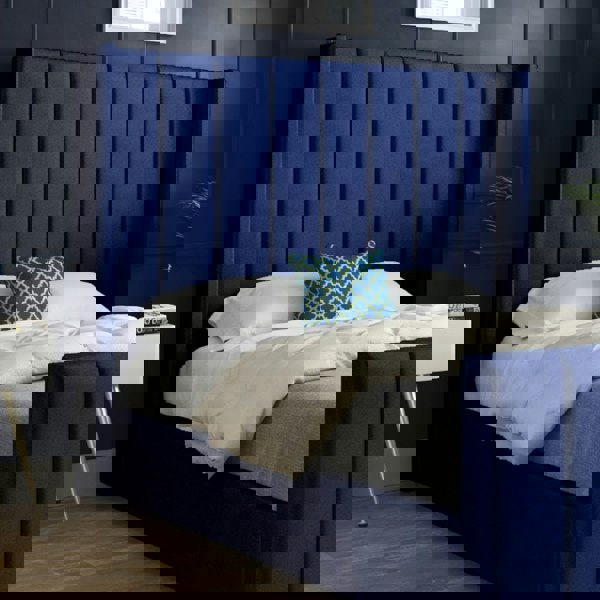 Casa Magna Romano Straight Winged Upholstered Soft Velvet Bed Frame - Blue