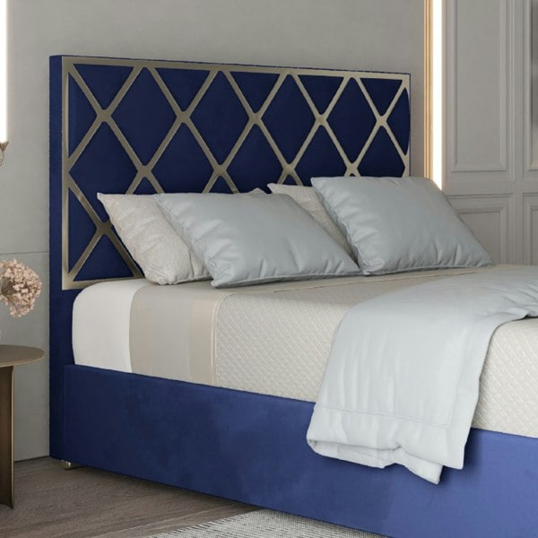 The footboard is detailed with pipe feet to match brushed silver or gold legs to match brushed gold