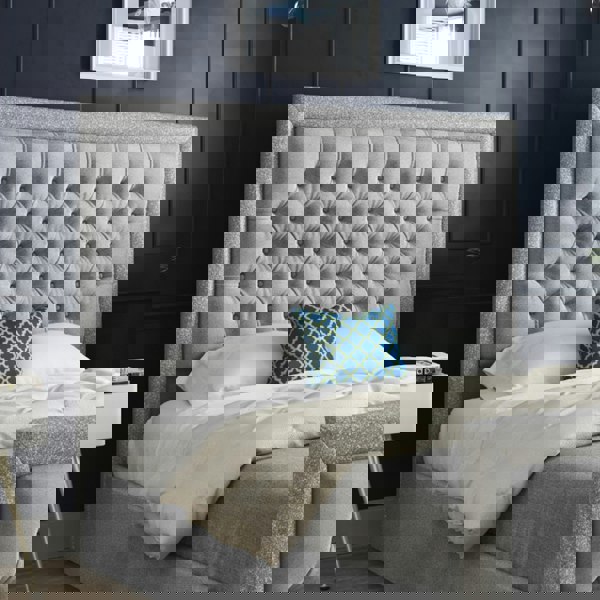 Casa Magna Venice Glitter Border Upholstered Soft Velvet Bed Frame - Grey