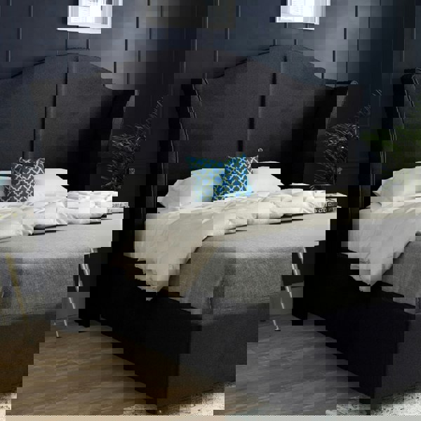 Casa Magna Zampa Curved Top Curved Winged Upholstered Soft Velvet Bed Frame - Black