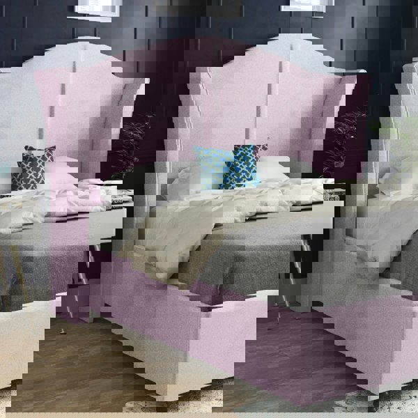 Casa Magna Zampa Curved Top Curved Winged Upholstered Soft Velvet Bed Frame - Pink