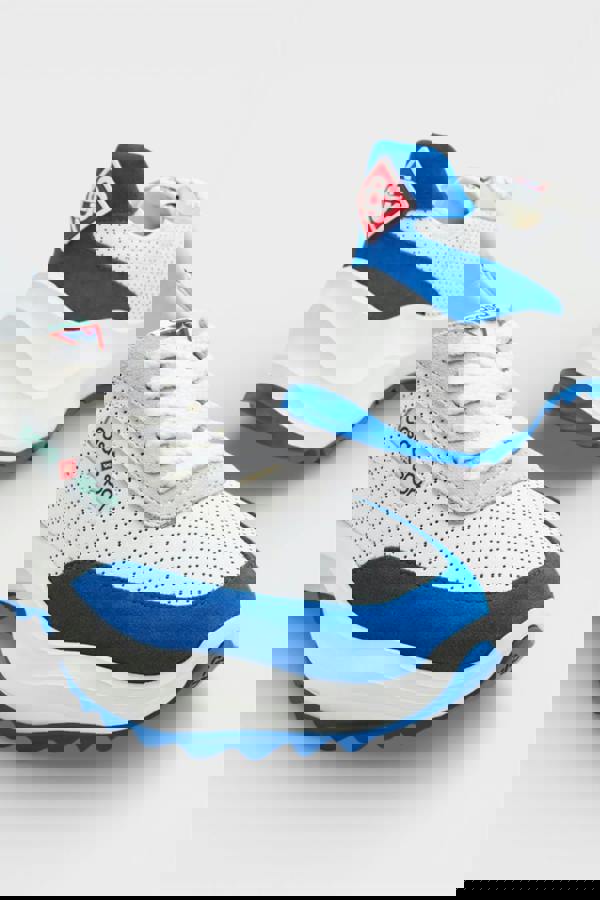 Crafted in crisp white with striking blue accents, this silhouette delivers understated sophistication for the discerning wearer.