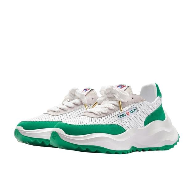 Casablanca Atlantis Sneaker in crisp white with striking green accents. Crafted entirely from premium textiles and manufactured in Indonesia, these sneakers combine contemporary design with quality construction. The breathable fabric upper ensures comfort for all-day wear, while the clean colourway pairs effortlessly with casual and smart-casual outfits. Perfect for those seeking stylish footwear that doesn't compromise on durability or wearability. 100% Textile