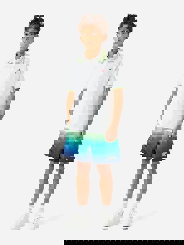Casablanca Beach Club boys’ swim shorts in green with a gradient print. The design continues the brand’s summer themes with a bold graphic finish and a clean, modern look for pool and beach days.