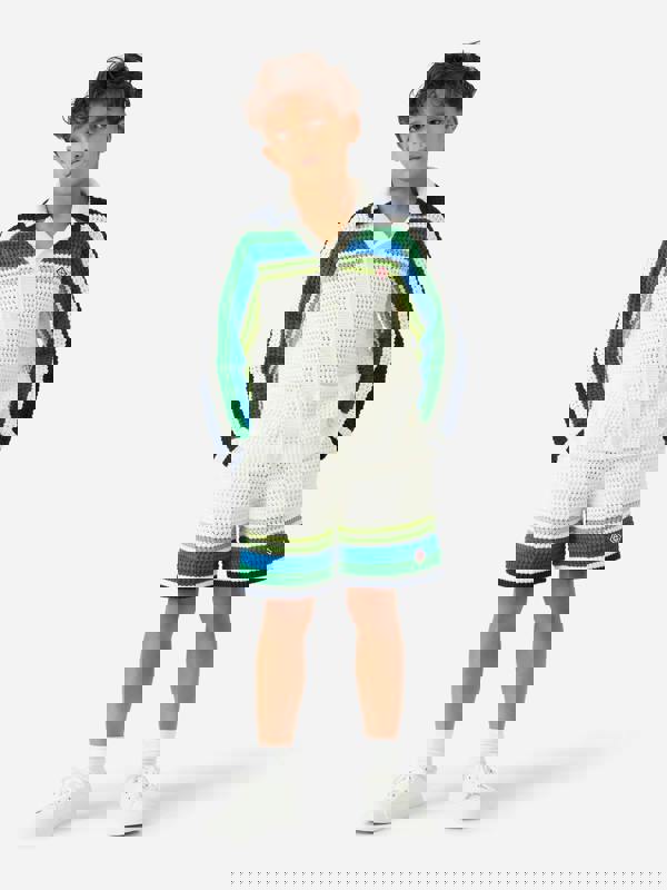 The Casablanca boys stripe knit shirt in white brings a clean, graphic look to everyday dressing. The knit construction keeps the finish structured, while the striped design adds clear contrast across the body. Part of the SS2026 collection, it offers a simple, polished option that works across a range of occasions.