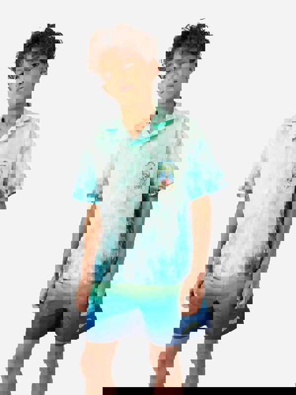 This Casablanca boys shirt comes in blue with a Surf Lotus print. Made from cotton, it offers a soft feel for comfortable wear throughout the day. The design suits warm-weather dressing and works as a standalone piece or layered over a tee.