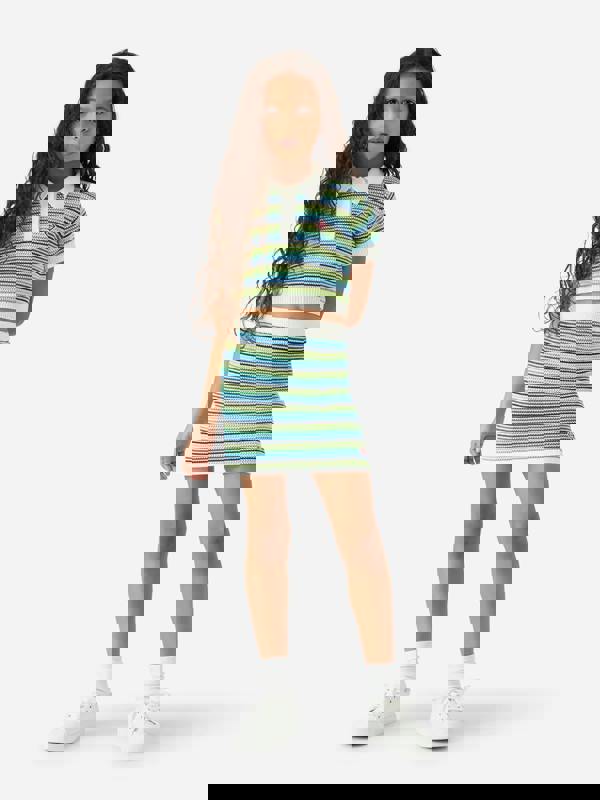 Casablanca girls striped crochet top in green. A crochet top with a striped finish, presented as part of the SS2026 collection. The design combines stripe detailing with crochet work for a vintage-inspired look.