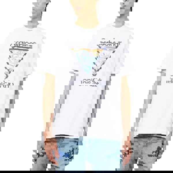 Elevate your casual wardrobe with the Casablanca Tennis Club Icon Crewneck White T-Shirt, crafted from 100% pure cotton for exceptional comfort and breathability.