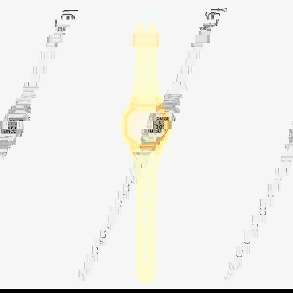 Vibrant, lively, and delightfully translucent, an ideal summer BABY-G companion for your dynamic lifestyle. This cheerful rendition of the compact BGD-565 showcases the classic bezel and band in transparent resin, revealing the vibrant tinted resin of the centre case. The watch boasts shock resistance and water resistance up to 100 meters. With its radiant, spirited, and playful design, it injects a dose of sunshine into your wardrobe and jumpstarts your summer adventures.