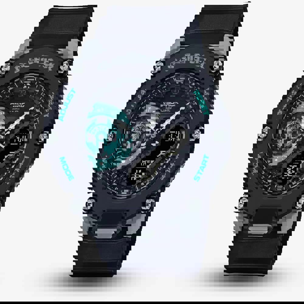 The GA-2200M-1AER G-Shock watch combines a 41mm round shaped resin case and resin strap with a traditional buckle. It has a dual display dial with luminescent hands which is protected beneath mineral crystal glass. Power is generated by the quartz movement. This model also has a water resistance of up to 200 metres.
