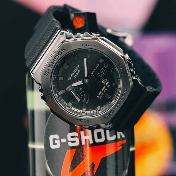 Introducing the G-Metal Octagon by Casio. This watch features a black octagon shaped dial with a grey bezel. This watch is built to G-Shock standards with endurance and time keeping in mind.