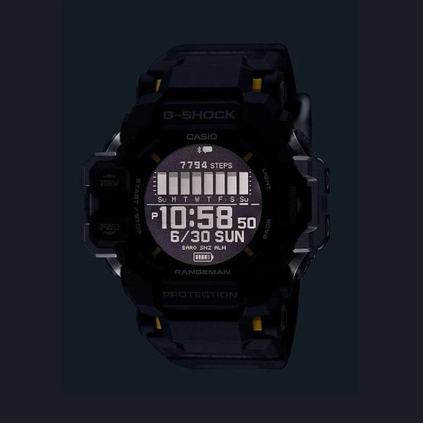 With steel shock absorbers on both sides, the redesigned case structure serves as a robust shock-absorbing powerhouse. This watch features the expected compass, altimeter, and barometer functions of a G-SHOCK adventure watch, the H1000 offers even more features, including a heart rate monitor for essential fitness and performance data, along with GPS tracking for activities in remote locations. Connect your H1000 to the CASIO Watches app to customize watch faces and functions according to your preferences, and to review activities and set fitness goals.