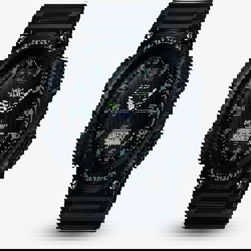 Powered by Tough Solar, this durable 100M water-resistant watch runs up to 23 months in darkness with power saving. It features 2 countdown timers, a stopwatch, 5 alarms, and world time mode—all housed in a rugged resin case for everyday reliability and adventure.
