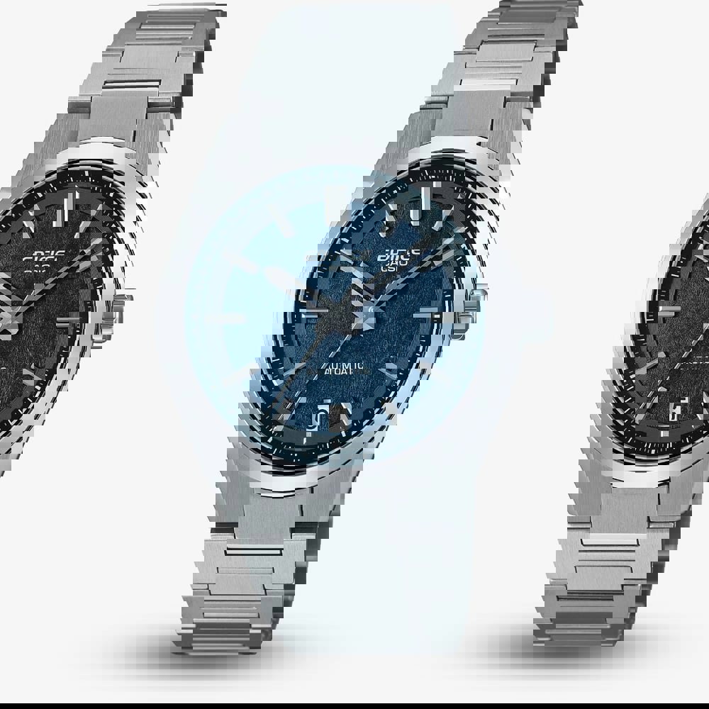 Designed for modern professionals, this watch features a distinctive forged carbon blue dial that exudes strength and elegance. The robust stainless steel case and bracelet ensure durability, while the bold blue tone provides a contemporary, refined look. The sapphire crystal glass protects against scratches, and the water resistance up to 100 metres makes it suitable for everyday wear.