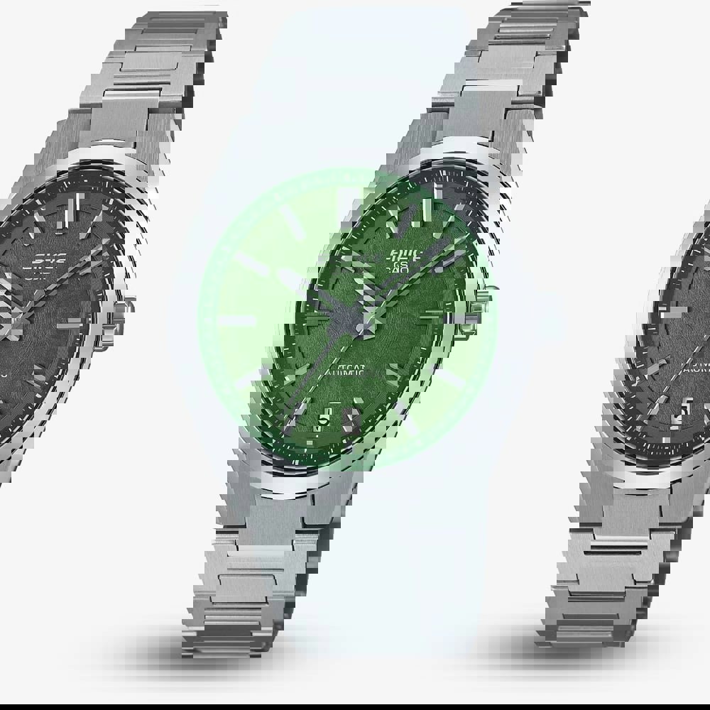 Designed for modern professionals, this watch features a distinctive forged carbon green dial that exudes strength and elegance. The robust stainless steel case and bracelet ensure durability, while the unique green tone provides a contemporary, refined look. The sapphire crystal glass protects against scratches, and the water resistance up to 100 metres makes it suitable for everyday wear.