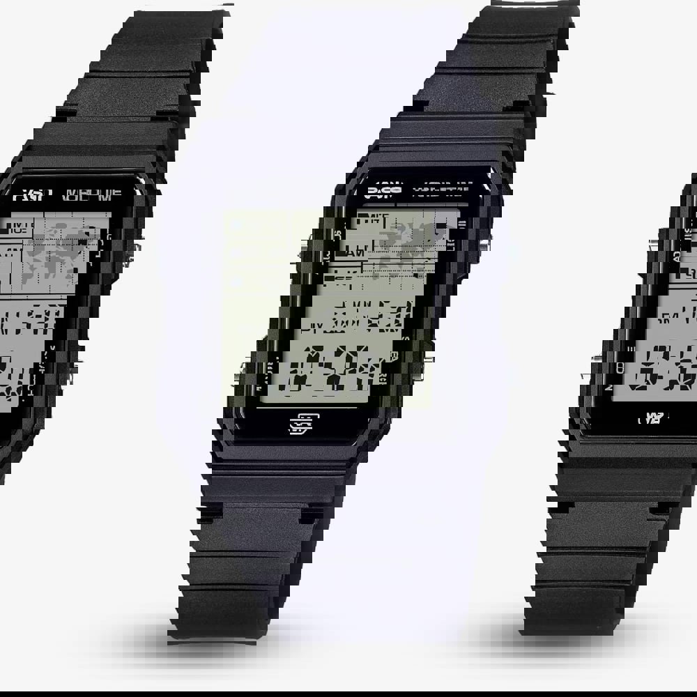 This watch combines Casio's renowned durability with innovative features, making it an essential companion for everyday adventures. Featuring a distinctive square design with a black resin case and strap, this watch offers a bold and contemporary look. The digital display showcases not only the time but also includes a world map function, perfect for travellers who want quick access to global time zones.