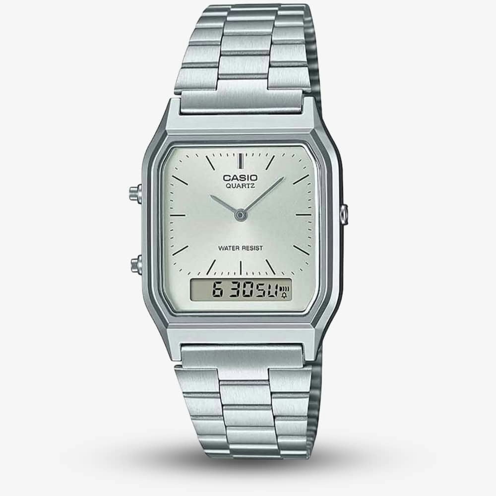 Crafted in lustrous stainless steel, its silver hue exudes sophistication while ensuring durability that stands the test of time. The sleek square case encases a captivating silver dial, a canvas for minimalist design and effortless style.