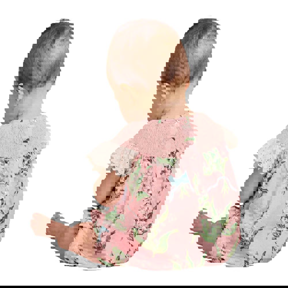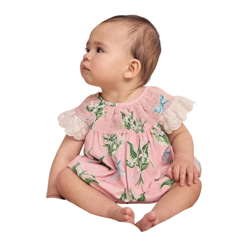 Cath Kidston brings a playful finish to everyday dressing with the Baby Girls Printed Broderie Romper in pink. Made from 100% cotton, it has a floral design that adds colour and pattern to a simple one-piece silhouette. A crew neckline keeps the look clean, while short sleeves with ruffle detailing introduce a soft, decorative touch.