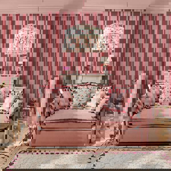 Simply charming. Canopy Stripe Pink & Red will have no issues bringing light-hearted fun into any home. This matt finish wallpaper is the perfect combination of timeless and contemporary, with its distinct wide stripe design in a beautifully bold colour palette of cranberry red and baby pink, for an eye catching pop of colour. So, if you fancy trying something a little different on your walls, Canopy Stripe Pink & Red might just be the oner for you.