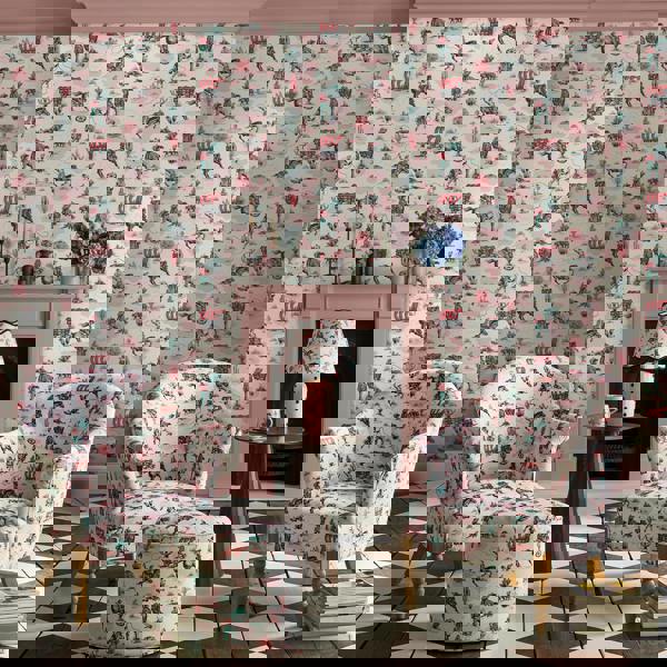 Welcome in the wild west with Cowgirls Pink. Perfectly on trend, this Cath Kidston design is inspired by an old vintage archive print, that has been reinvented with the incorporation of cowgirls as a celebration of the women that have made us who we are today. Cowgirls Pink illustrates the life of a cowgirl through a beautiful hand-painted style print. You can see her lassoing whilst horseback riding through an array of cacti and red wagons, featuring a pink based colour palette of blush, coral and pink-toned red, alongside turquoise blue and both charcoal and light grey, all laid upon a classic Cath Kidston cream background. This wallpaper comes in a beautiful matt finish for a contemporary look and feel. It will definitely have no issue sparking fun and adventure within any space.